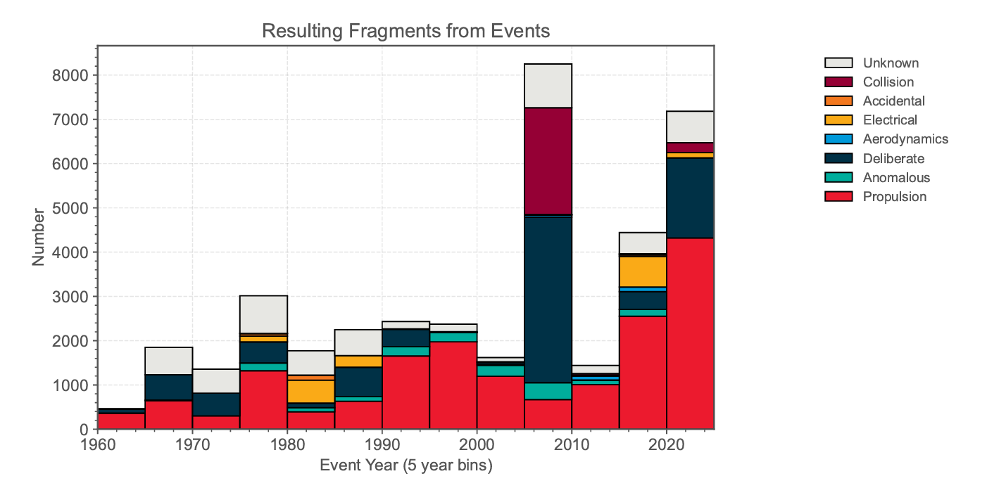 When satellites or rocket bodies break apart in orbit – known as fragmentation events – they release thousands of debris pieces that increase risk for all space operators.