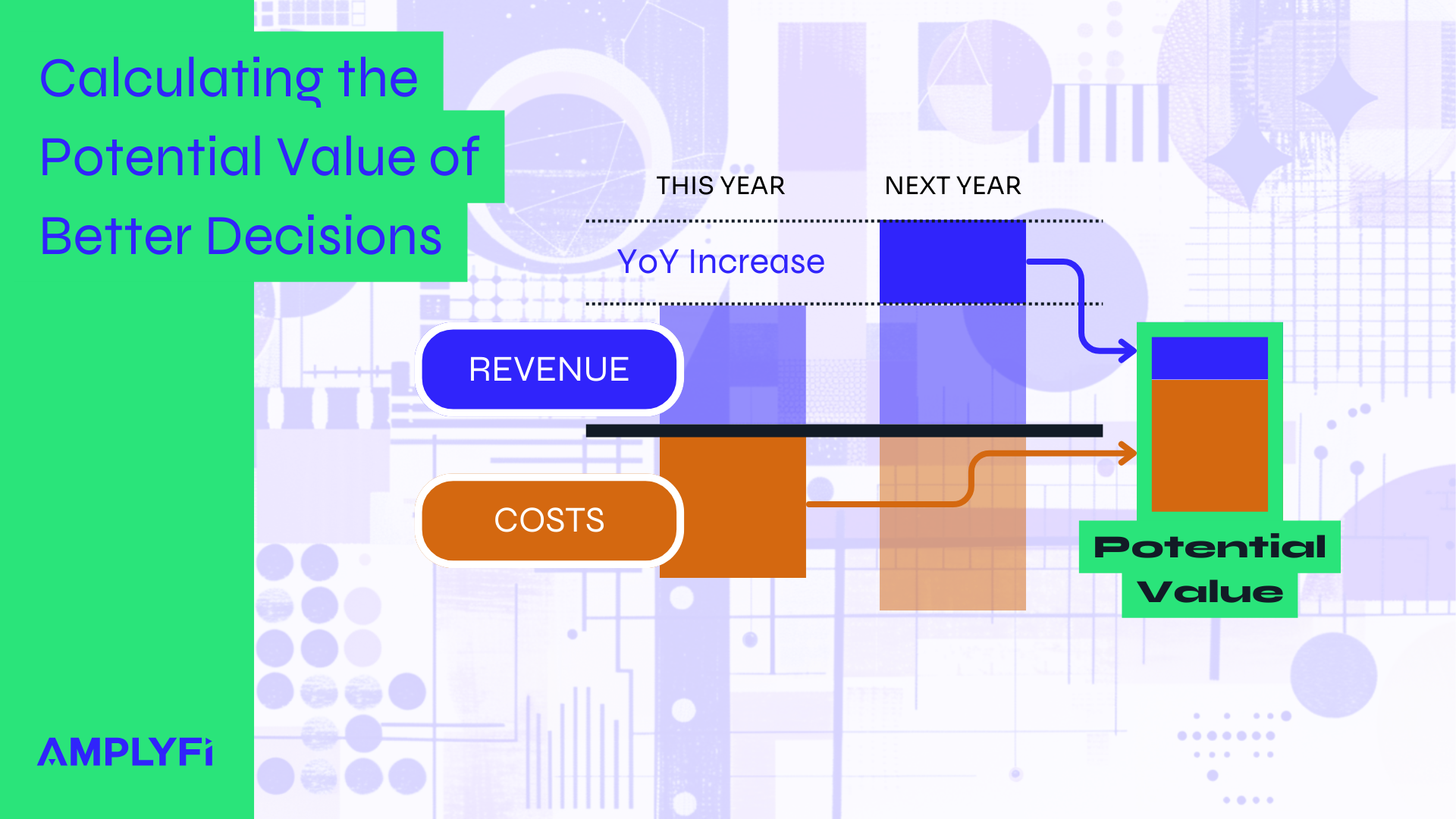 As a guide to calculating the Value of Better Decisions, we use current operational costs + revenue growth, think of this together as “Total Decison Value”. To explain this thinking: