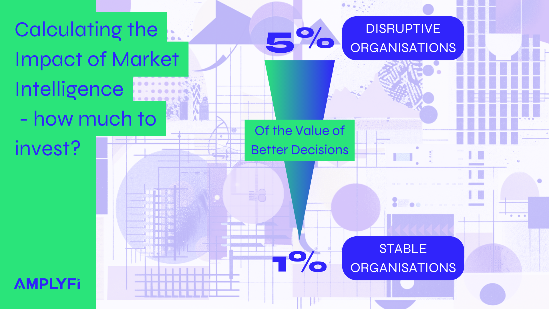 - Generally, we advise that organisations developing an initial Market Intelligence budget should seek to spend 1-5% of Decision Value (annual cost + revenue uplift) and grow from there as metrics are achieved.